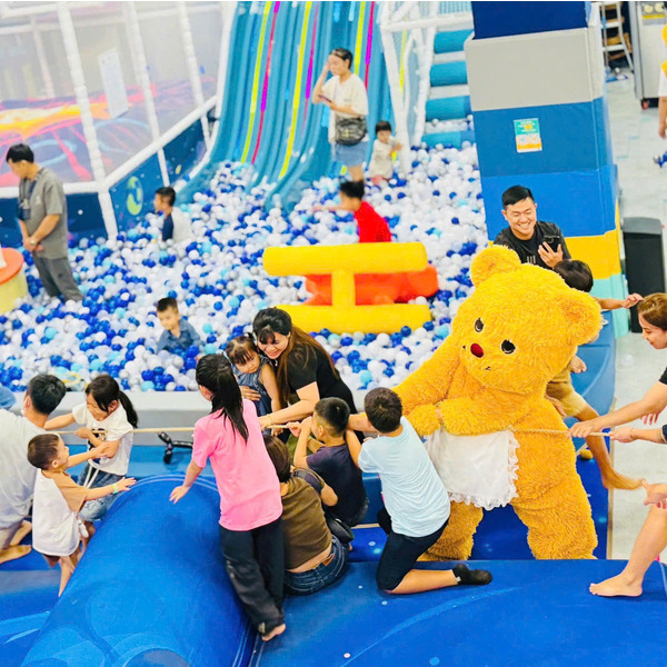 - Các bé được tự do tham gia khu trò vận động liên hoàn kết hợp với nhà banh, gối hơi thú, hay hệ thống cầu trượt đặt liền kề... hoặc trải nghiệm vùng đất nhện được trang hoàng lưới dây đầy mới lạ