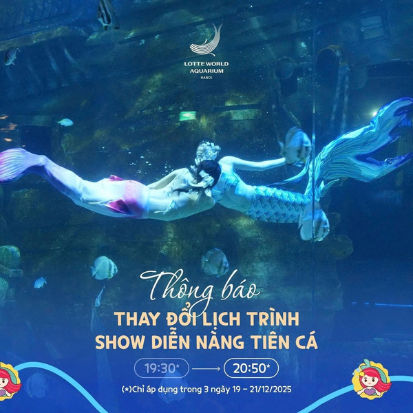 Riêng ngày 19/12-20/12-21/12/2025 Show diễn Nàng Tiên Cá từ 19h30 đổi thành 20h50