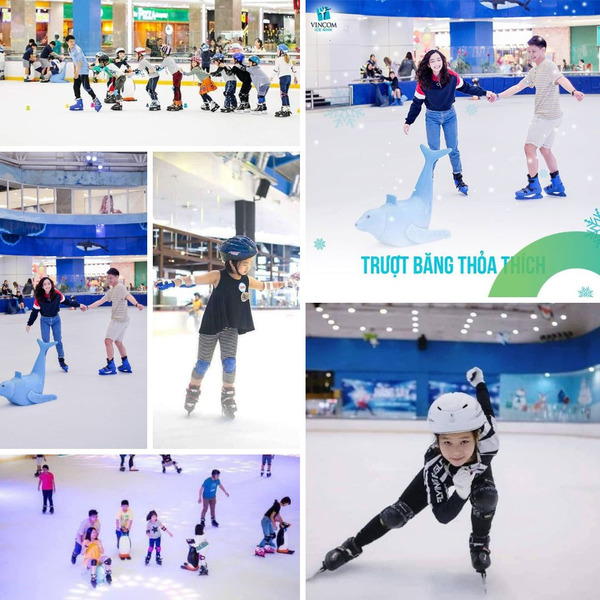 * Sân băng Vincom Ice Rink là điểm hẹn lý tưởng cho các bạn yêu thích các môn thể thao xứ lạnh: trượt băng, khiêu vũ trên băng, hockey, trượt patin,... giúp thư giãn sau những giờ học tập, làm việc căng thẳng.